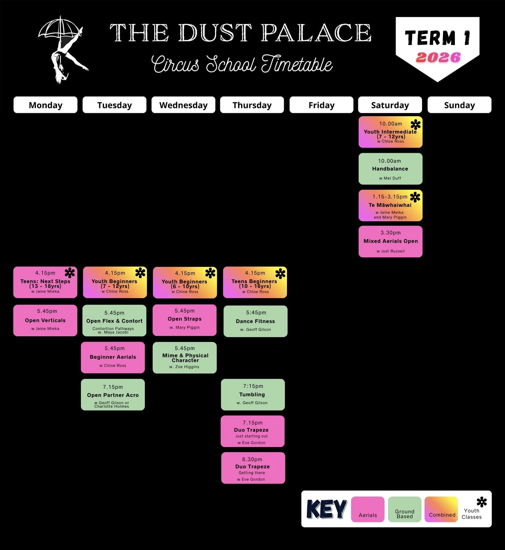 Term 1 2026 dates: Tuesday 27th January - Saturday 4th April (no classes on public holidays)