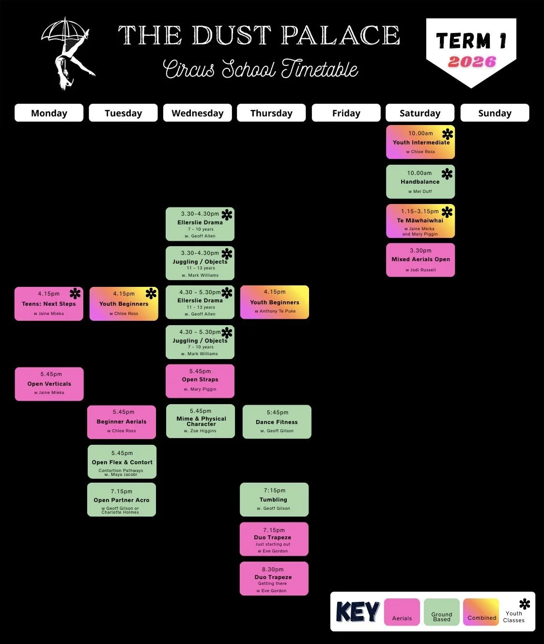 For 2 or more kids and up to 1 caregiver all attending classes, email us at kiaora@thedustpalace.co.nz to find out about our whānau rates.