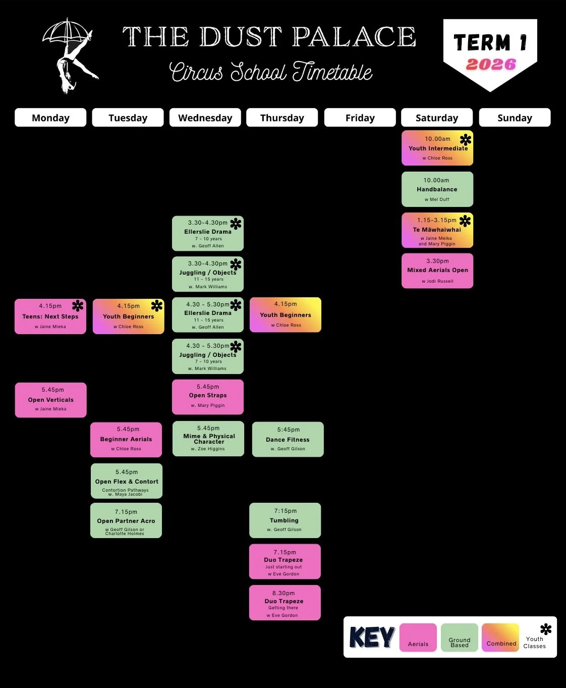 Find out more about our range of beginner to advanced classes, some handy FAQs, or get in touch with our friendly team on kiaora@thedustpalace.co.nz